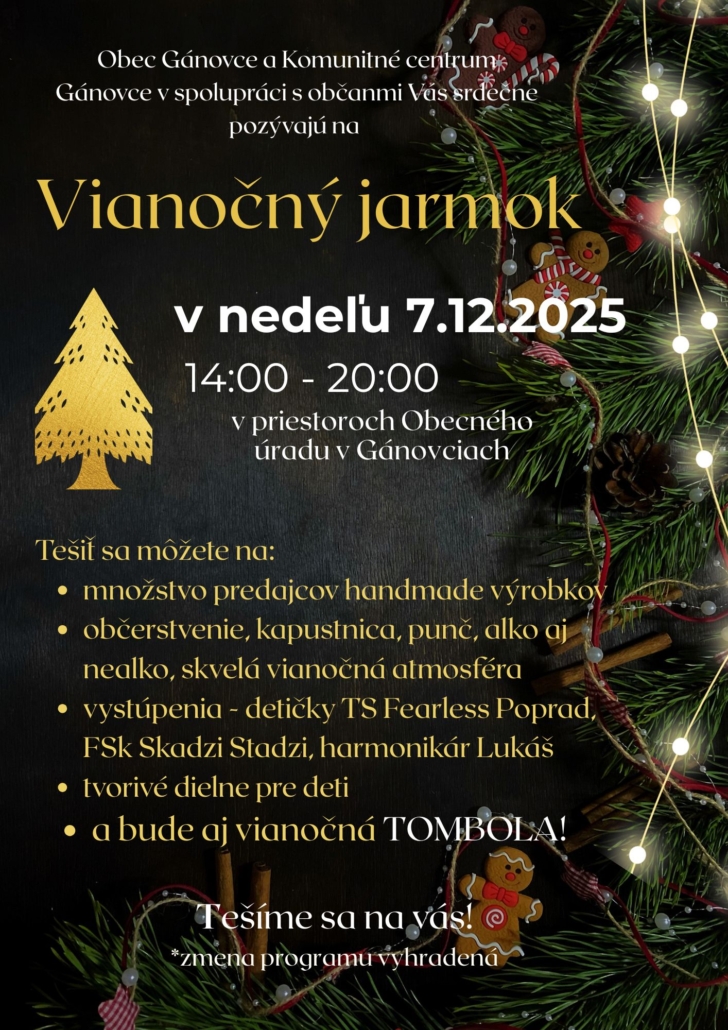 Obyvateľov a návštevníkov obce srdečne pozývame na podujatie „Vianočný jarmok“.